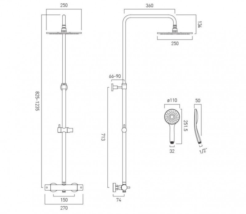 Vado Individual kolumna prysznicowa ścienna z termostatem