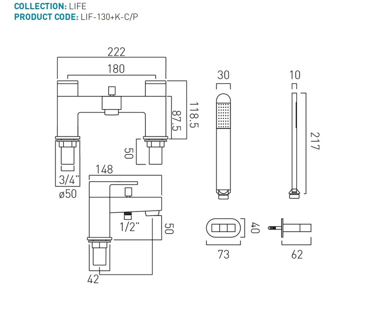 Vado Life bateria wannowa dwuuchwytowa dwuotworowa z zestawem prysznicowym chrom.