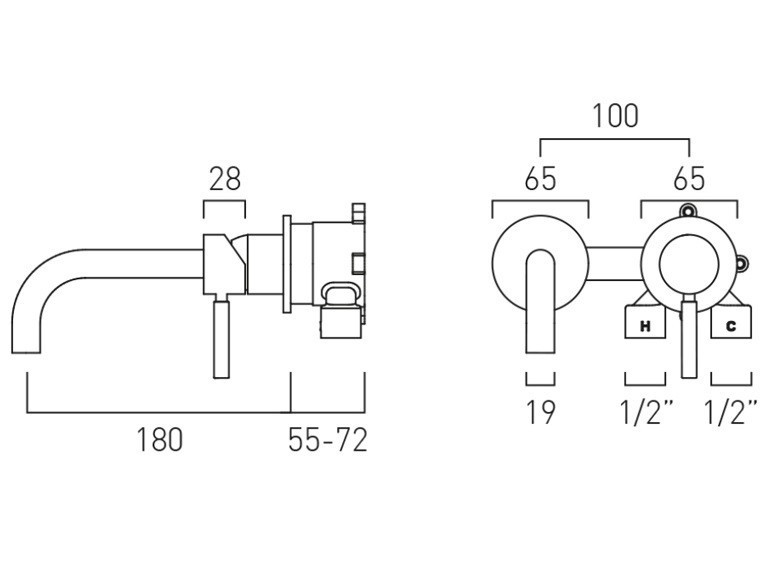 Vado Origins Bateria umywalkowa podtynkowa, jednouchwytowa, bez korka