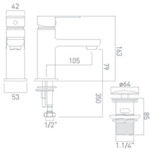 Vado Phase bateria umywalkowa jednouchwytowa z korkiem klik-klak chrom.