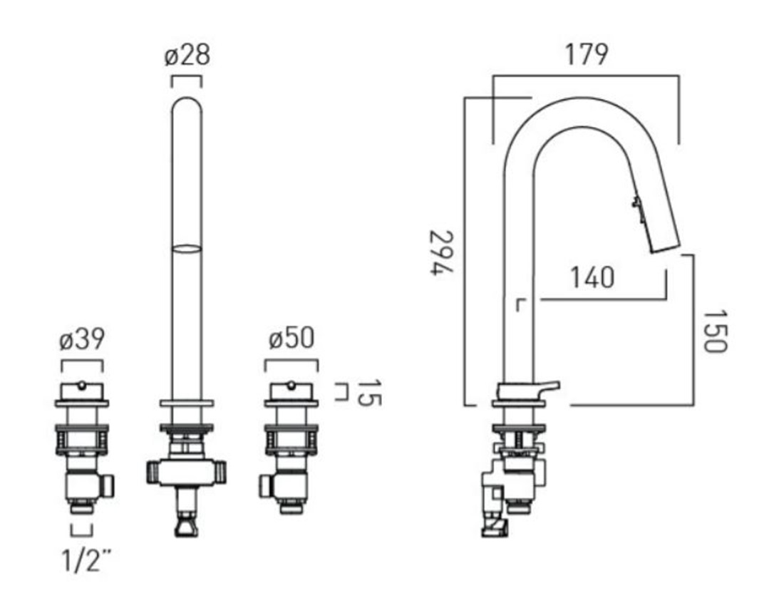 • Wysokość wylewki: 150 mm