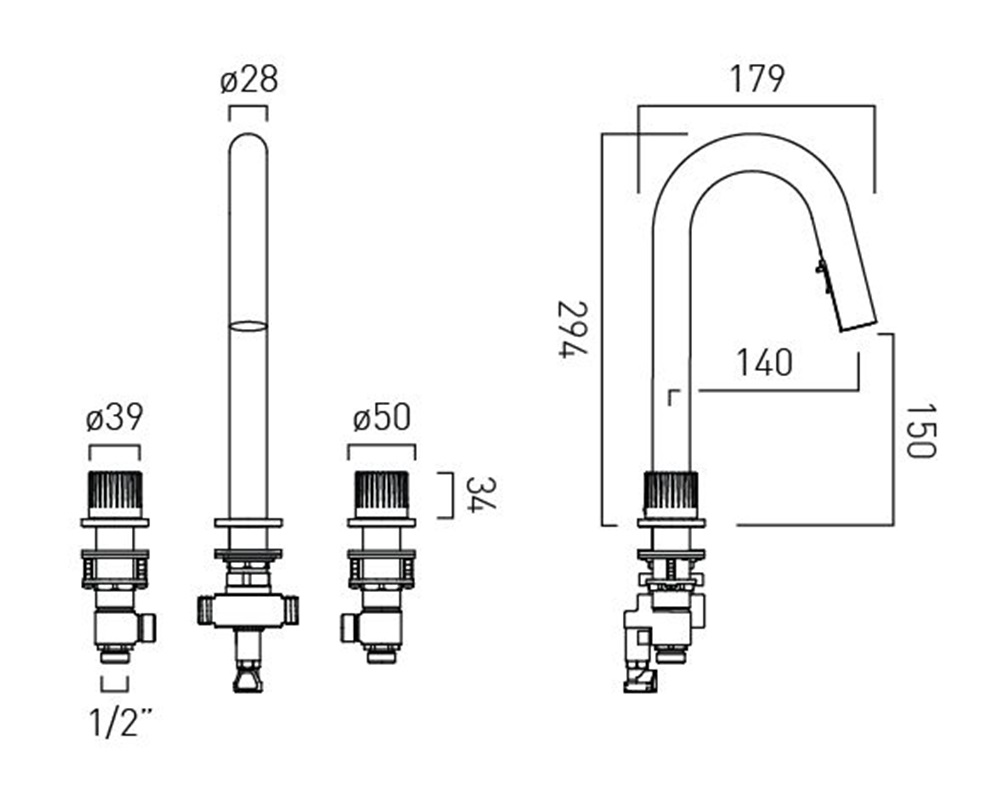 Vado Safari Bateria umywalkowa 3-otworowa z wyciąganą wylewką