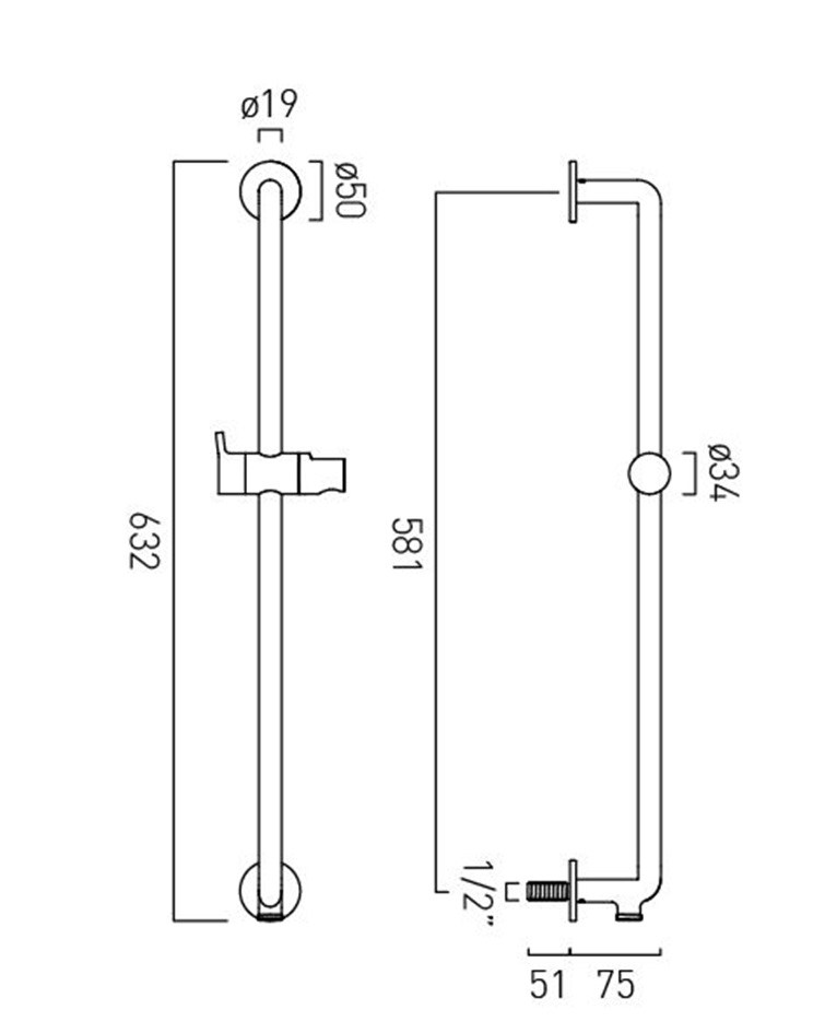 Vado Safari Drążek prysznicowy ze zintegrowanym przyłączem, dł. 632 mm