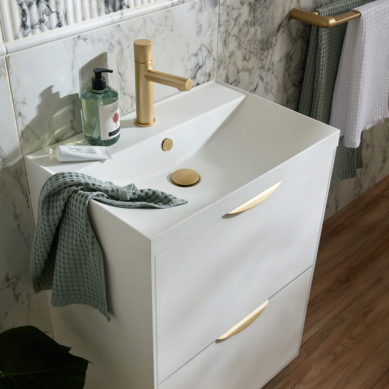 Safari prezentuje dwa różne, ale wzajemnie uzupełniające się style. Pierwszy to eleganckie baterie z dźwignią połączone z minimalistycznymi szafkami o fazowanych krawędziach, które tworzą ponadczasowy design oparty na prostych liniach i gładkich powierzchniach. Drugi styl charakteryzują baterie z ryflowanymi uchwytami, wprowadzające odważny, organiczny akcent do przestrzeni łazienkowej.