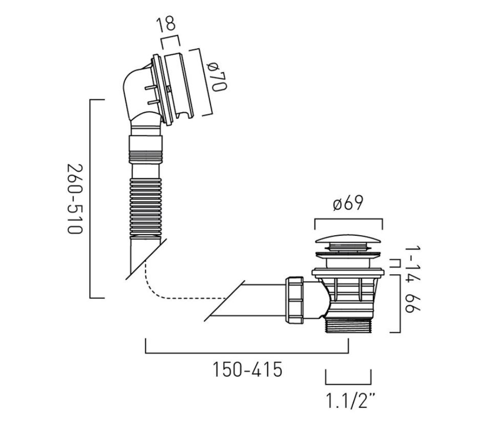 Vado Safari Odpływ wannowy z korkiem klik-klak i wyciąganym filtrem