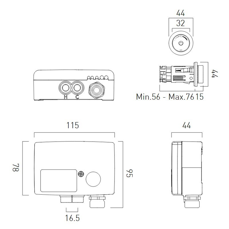 Moduł termostatyczny 1-drożny z jednostką sterującą.