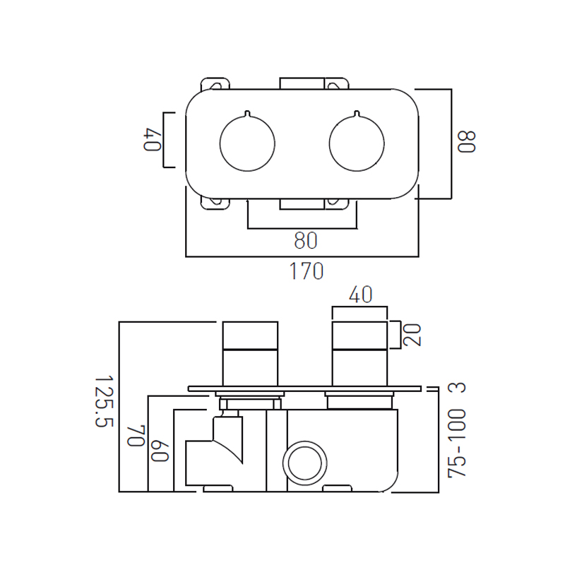Bateria podtynkowa termostatyczna do obsługi 1 źródła wody.