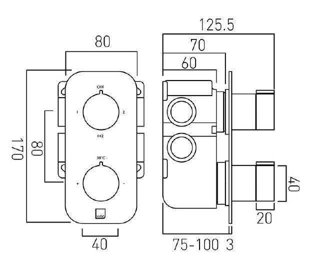 Vado termostatyczna bateria podtynkowa 2-drożna.