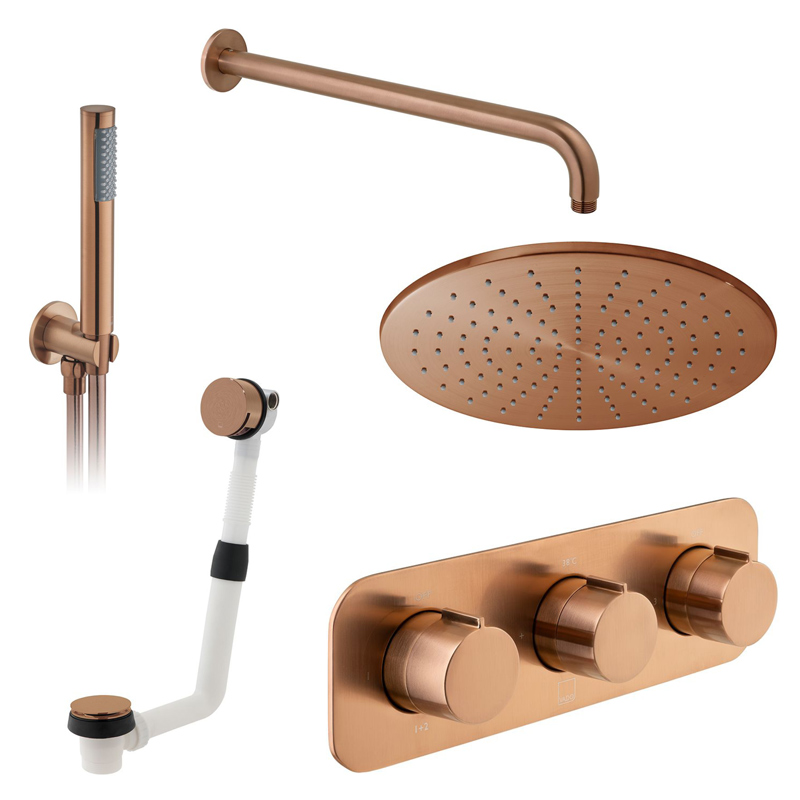 Zestaw prysznicowy termostatyczny 3-drożny z deszczownicą, zestawem punktowym i syfonem z funkcją napełniania wanny.