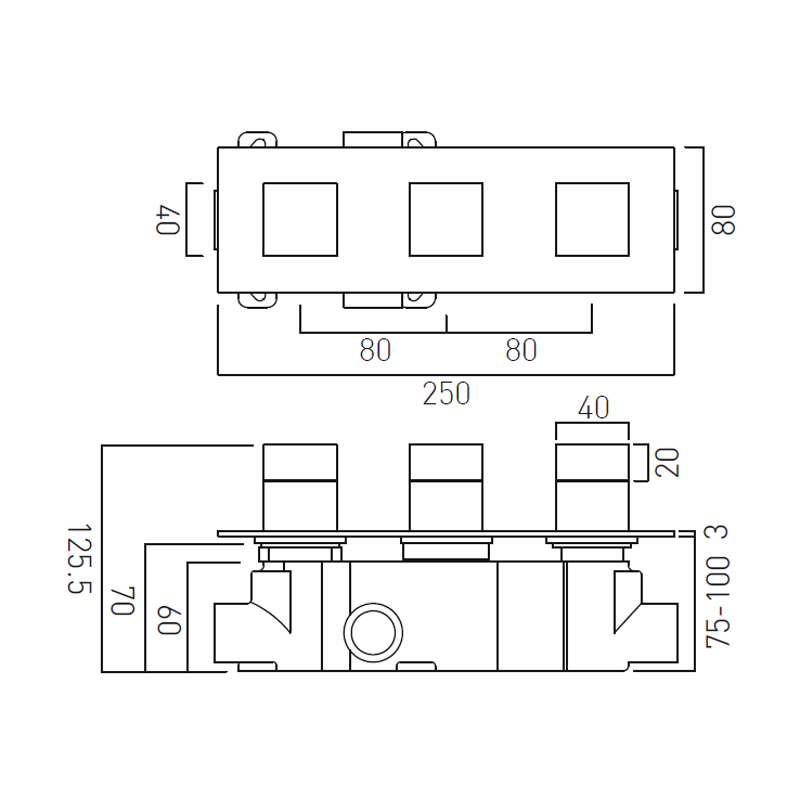 Angielska bateria podtynkowa termostatyczna do obsługi 2 źródeł wody.