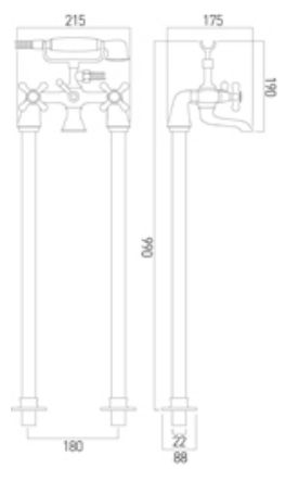 Vado Victoriana bateria wannowa wolnostojąca z zestawem prysznicowym antyczne złoto,