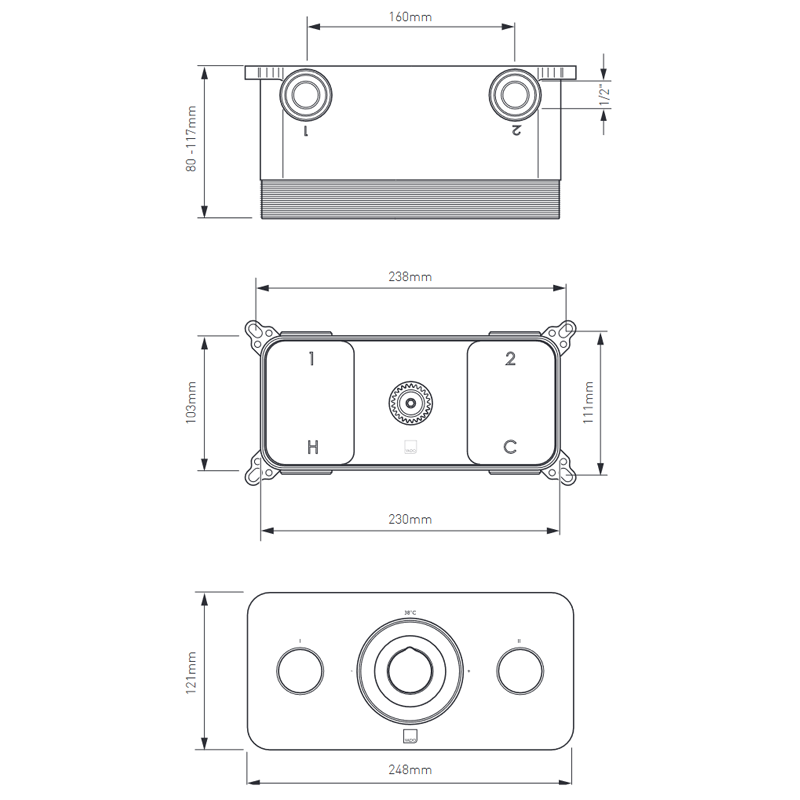 Vado Zone termostatyczna bateria podtynkowa 2-drożna