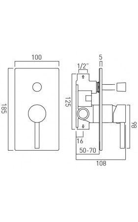 Vado Zoo bateria prysznicowa podtynkowa z przełącznikiem (kwadratowa) chrom.