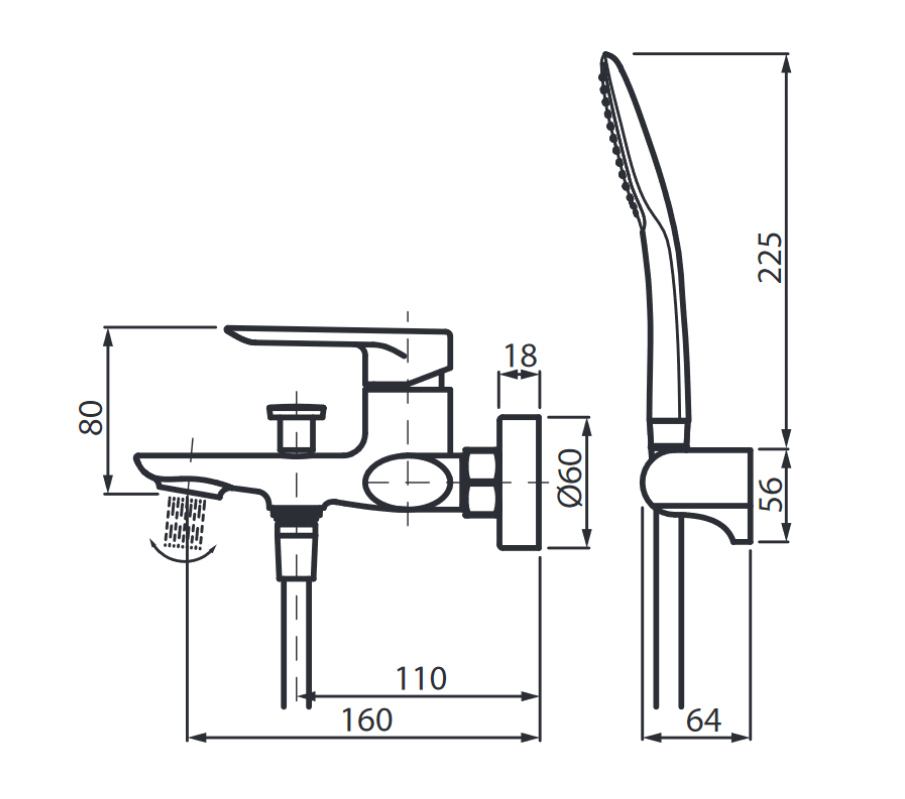 Bateria wannowa ścienna marki Vedo seria Aletta Nero