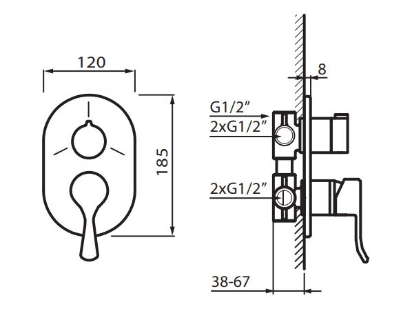 Bateria wannowo-prysznicowa podtynkowa 3-drożna marki Vedo seria Cento.