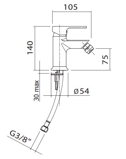 Bateria bidetowa marki Vedo seria Lukka przystosowana do montażu z korkiem typu klik klak.
