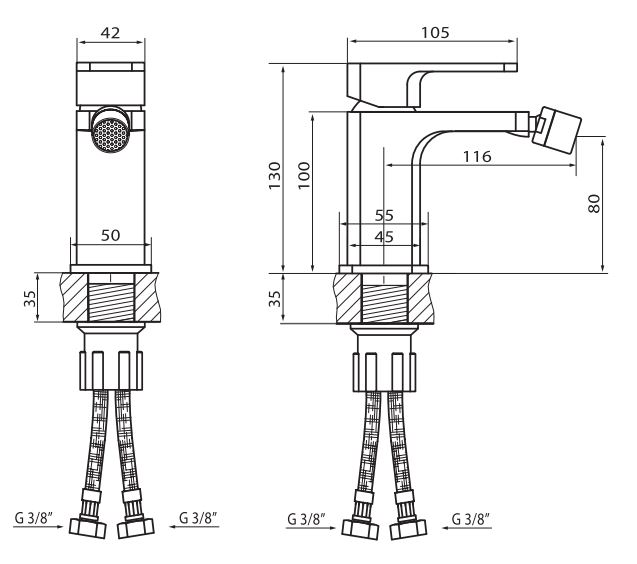 Bateria bidetowa marki Vedo seria Mito przystosowana do montażu z korkiem typu klik klak.