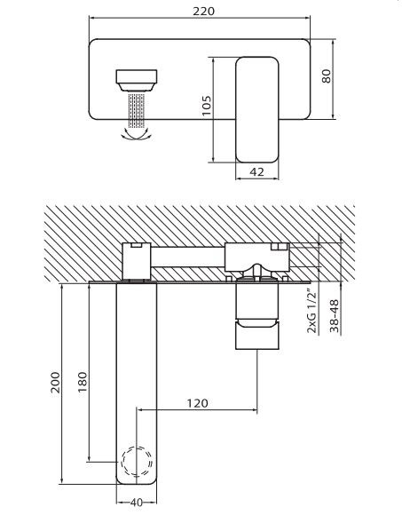 Bateria umywalkowa podtynkowa marki Vedo seria Mito z korkiem typu klik klak.