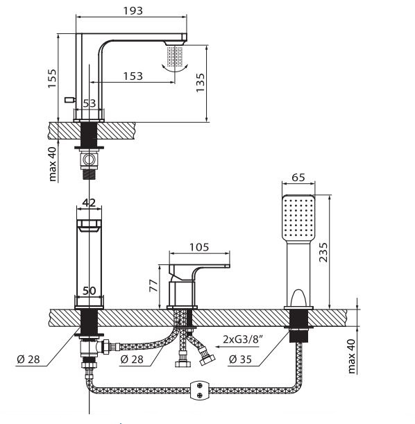 Bateria wannowa 3-otworowa marki Vedo seria Mito.