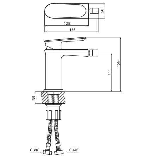 Bateria bidetowa marki Vedo seria Otto przystosowana do montażu z korkiem typu klik klak.