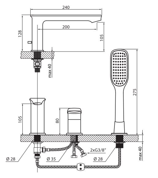 Bateria wannowa 3-otworowa marki Vedo seria Otto.