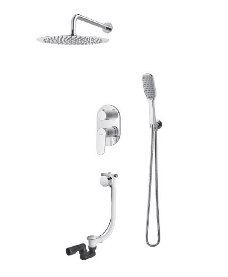 Kompletny system podtynkowy wannowy z napełnianiem przez przelew z deszczownicą marki Vedo seria Otto