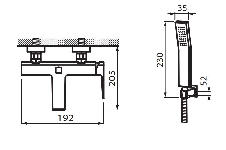 Bateria wannowa ścienna z zestawem natrsykowym marki Vedo seria Sette