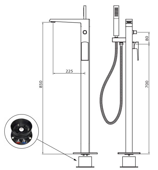 Bateria wannowa wolnostojąca podłogowa marki Vedo seria Sette