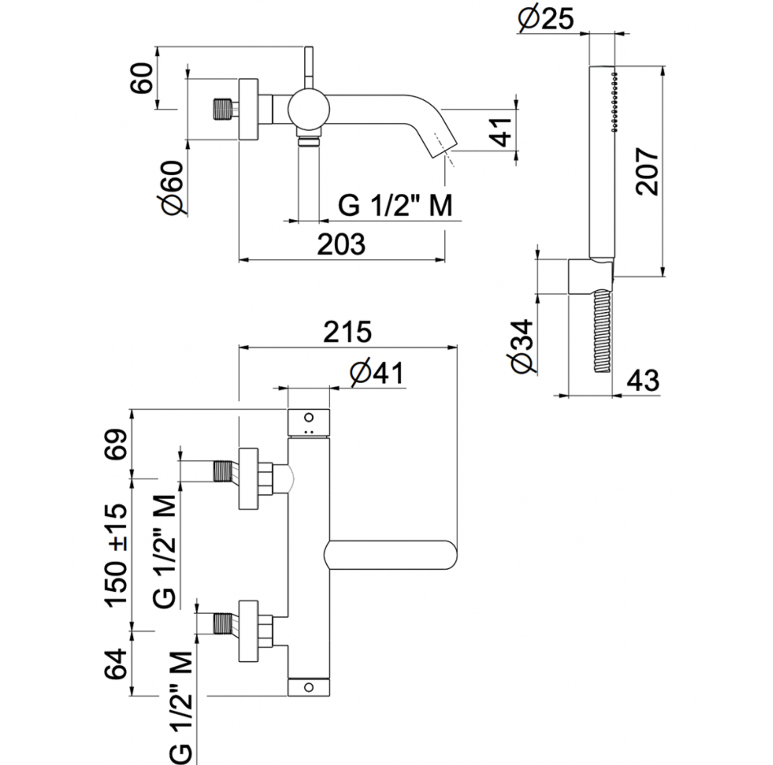 Bateria wannowa w komplecie ze sluchawką, wężem i uchwytem ściennym.