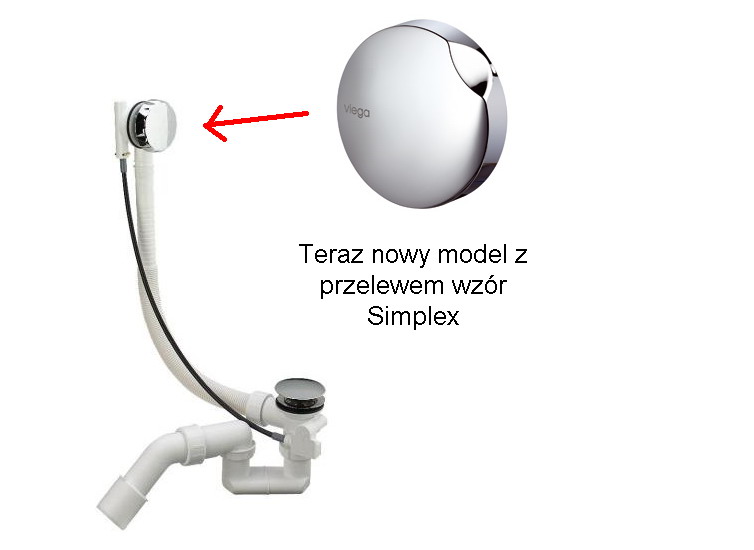 Syfon wannowy Viega 495121 z korkiem automatycznym, zalecany do wanien standardowych , korek i pokrętło chromowane.