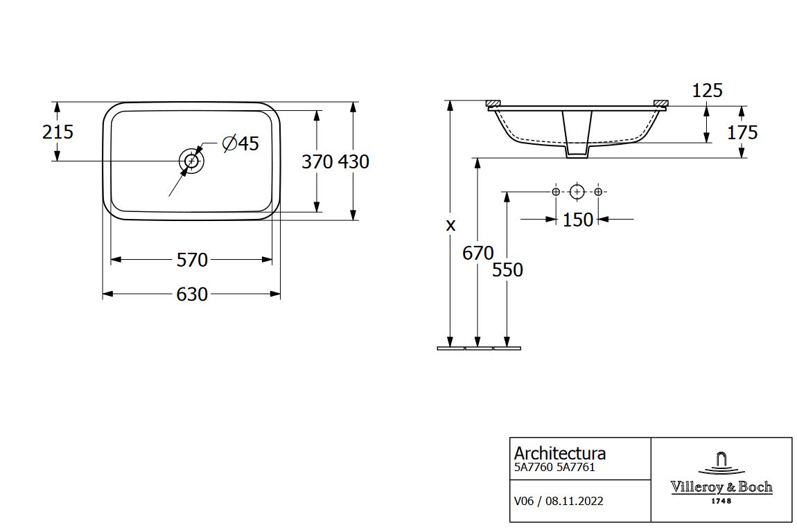 Villeroy&Boch Architectura umywalka podblatowa prostokątna