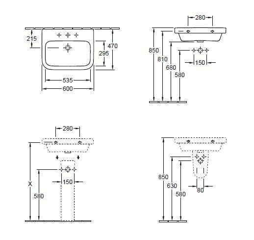 Możliwość skomponowania umywalki z postumentem i postumentem.