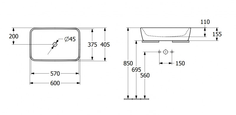 Villeroy&Boch Architectura umywalka stojąca na blacie prostokątna