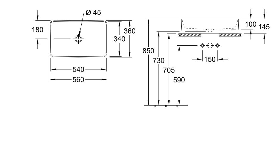 - zalecany montaż z minimalną odległością między tylnym bokiem umywalki, a ścianą 5 cm