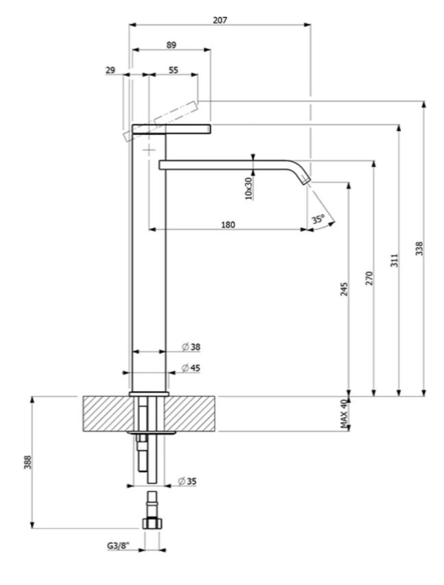 Dawn Jednouchwytowa bateria umywalkowa, wysoka bez zestawu odpływowego