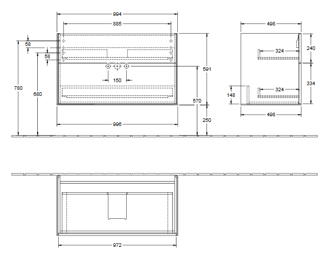 Możliwe różne kombinacje kolorów frontu i korpusu, regału i płyty przykrywającej.