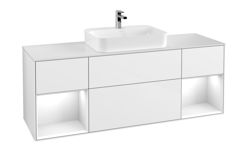 Villeroy&Boch Finion szafka pod umywalkę 160 cm z 4 szufladami 2 otwartymi półkami i oświetleniem LED Glossy White Lacquer biały G451GFGF