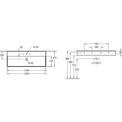 Możliwość kompletowania umywalki z 1 lub 2 relingami.