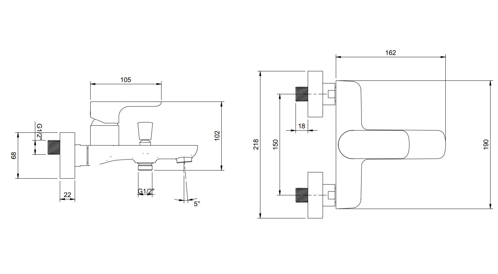 Villeroy&Boch O.Novo bateria wannowa ścienna