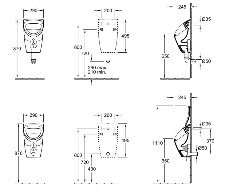| odpływ | poziomy |