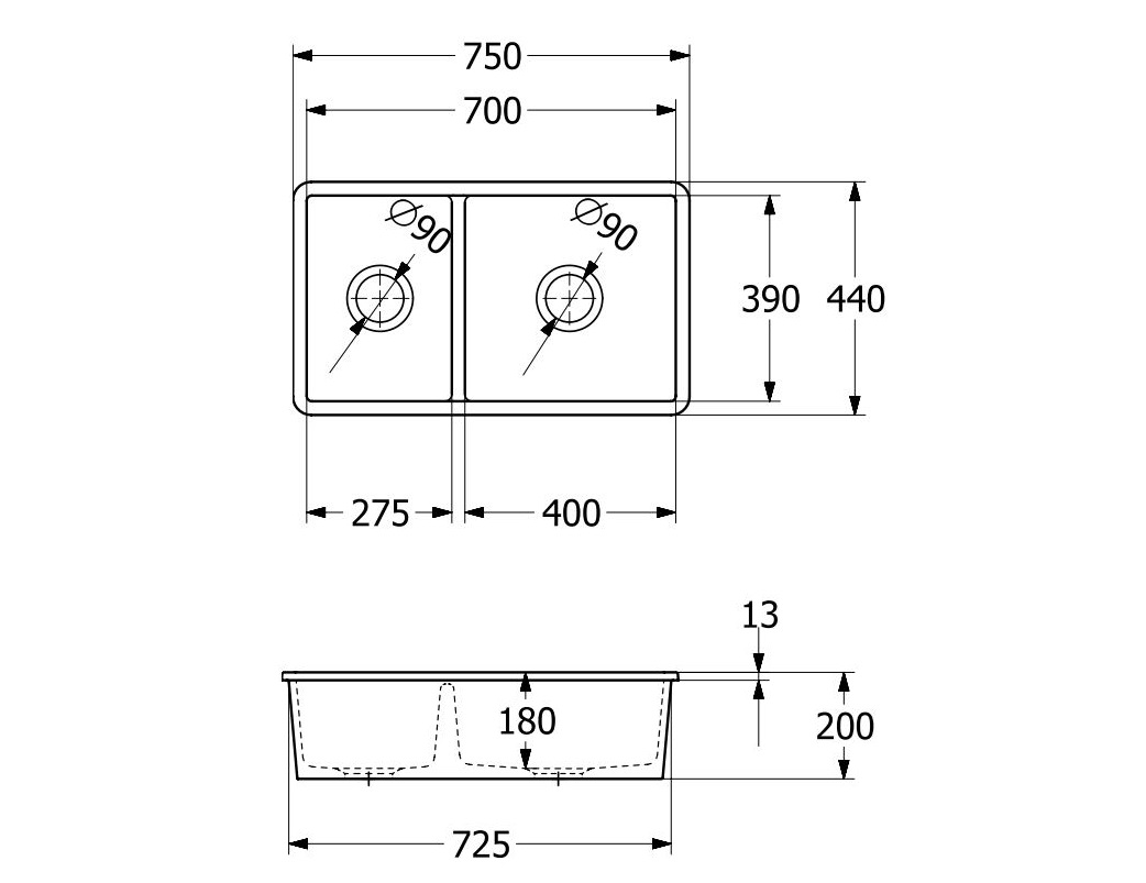 Villeroy&Boch Subway 80U zlewozmywak podblatowy ceramiczny 2 komory