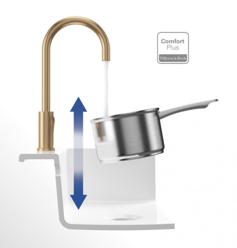 Wzornictwo, które przynosi zaszczyt swojej nazwie: miękki kształt i smukła, wysoka, wygięta jak łuk wylewka baterii z serii. Umbrella bardzo przypomina parasol. Baterie ComfortPlus zapewniają komfortową wysokość i dużą swobodę ruchów. Są idealnym rozwiązaniem, kiedy trzeba umyć np. blachę do pieczenia lub napełnić duże naczynie i gwarantują maksimum komfortu w strefie zmywania.