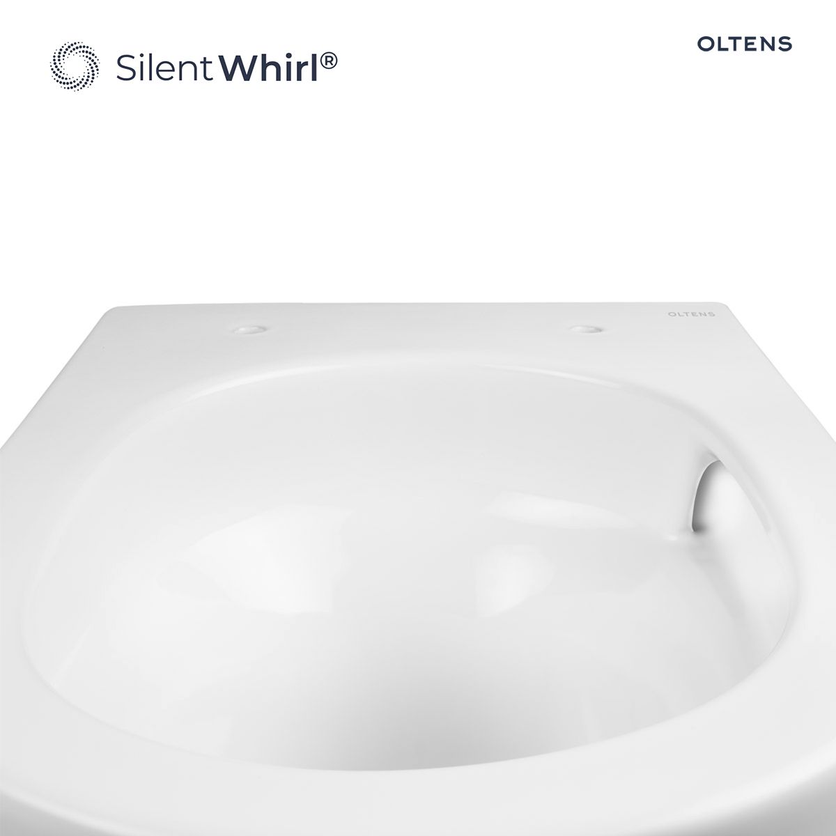 Zestaw Oltens Hamnes Stille muszla wisząca PureRim SilentWhirl z powłoką SmartClean z deską wolnoopadającą Ovan Slim biały 42522000