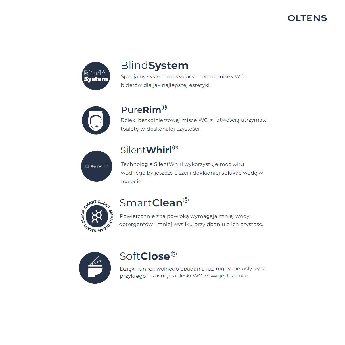 Opinie o: Zestaw Oltens Hamnes Stille muszla wisząca PureRim SilentWhirl z powłoką SmartClean z deską wolnoopadającą Ovan Slim biały 42522000